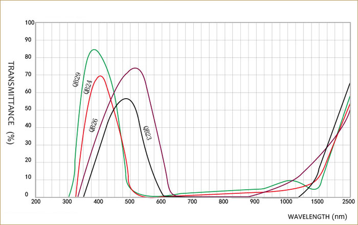 牌號 | 厚度(mm) | 320(nm) | 334(nm) | 350(nm) | 405(nm) | 480(nm) | 600(nm) | 633(nm) | 694(nm) | 750(nm) |